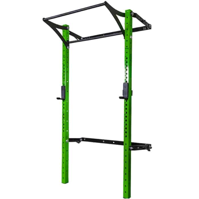 The patent pending 3×3 Profile? Rack Pro with Kipping Bar? is revolutionizing the workout space as we know it. Easily transform any garage, home or12px commercial space into a multi-functioning gym while sacrificing just 4? of wall space when not in use. Folding away requires no disassembly. The Profile? Rack Pro offers heavy duty J-Cups, laser cut numbers and can be upgraded to one of our 8 custom colors.
