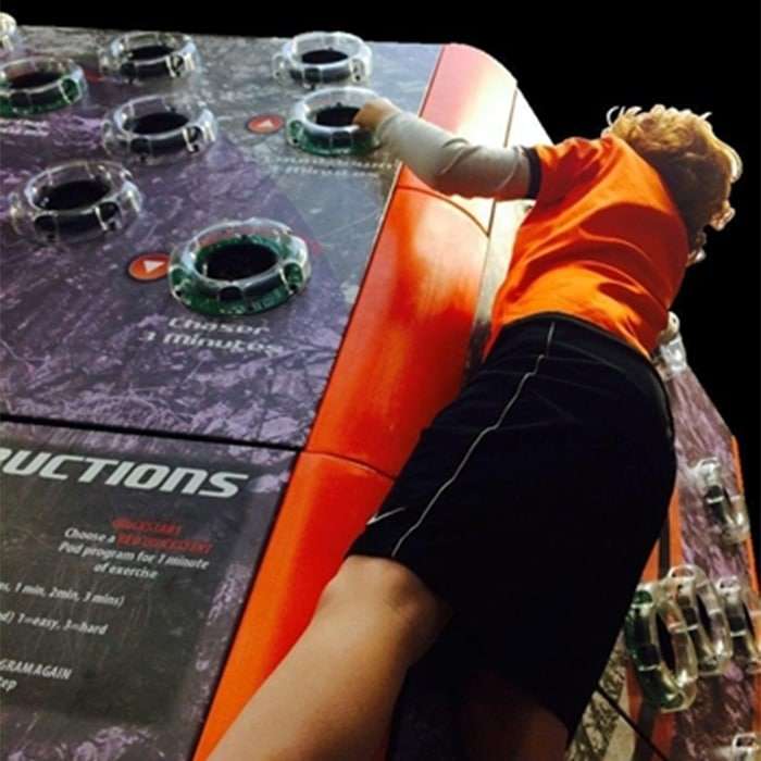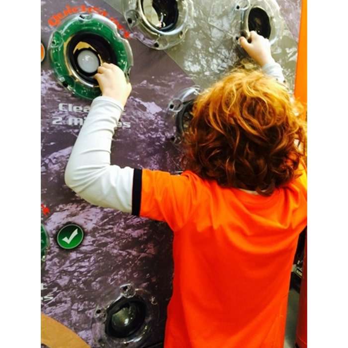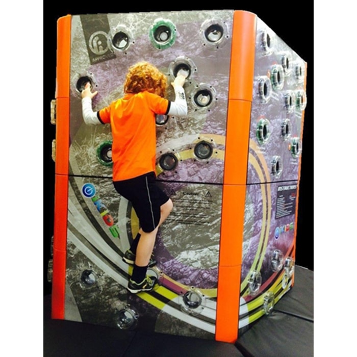 Climbing is a superb way to develop balance, core strength and stamina – traversing enables the challenge to fit into any room. The small grips traditionally used in climbing walls are hard for children to hold onto and often spoils the fun of it. Our unique grips are larger and easier to use, so youngsters can focus on the challenge of the interactive game. Children climb around the wall scoring points by pressing the grips as they light up. Scores are built up as the players become fitter and stronger.